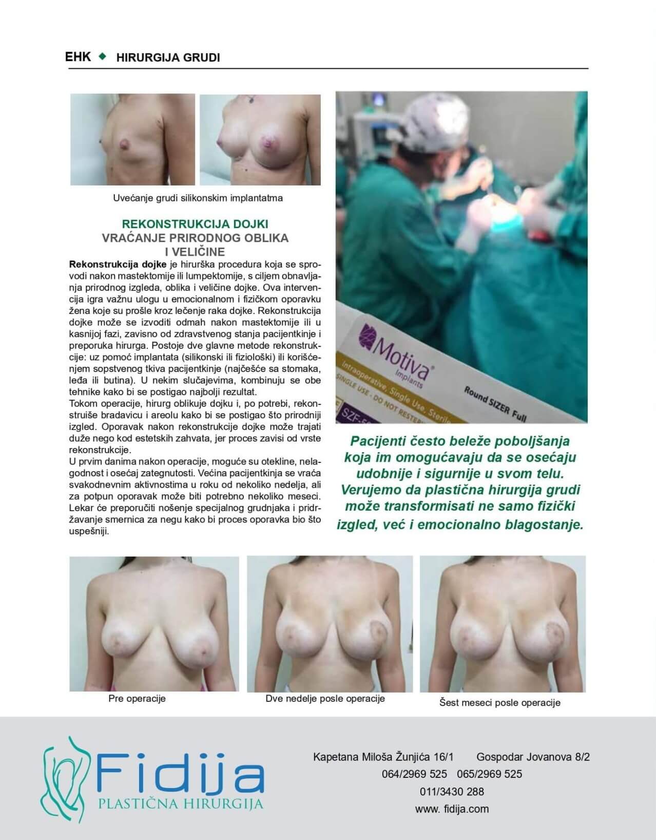 U nastavku vam predstavljamo isečke iz uglednog časopisa EHK, koji se bavi temama iz oblasti estetske i rekonstruktivne hirurgije. Ovi članci osvetljavaju rad dr Gorana Stankovića i tima Klinike FIDIJA, kroz konkretne informacije i profesionalne uvide u procedure koje menjaju život na bolje.